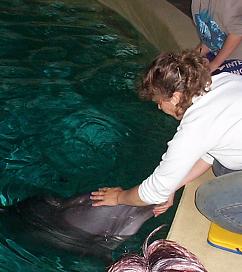 Zum Anfang sollten wir erst lernen, wie sich solch ein Tier anfühlt und das konnten wir am besten mit oder an den Seelöwen, aber die sind ja auch so putzig. Es handelte sich dabei um Kalifornische Seelöwen, die schon in der dritten Generation regelmäßig im Delphinarium für Nachwuchs sorgen.